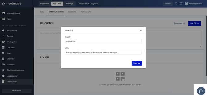 1. In App & Web > Gamification > Gamification QR, click on "New QR".