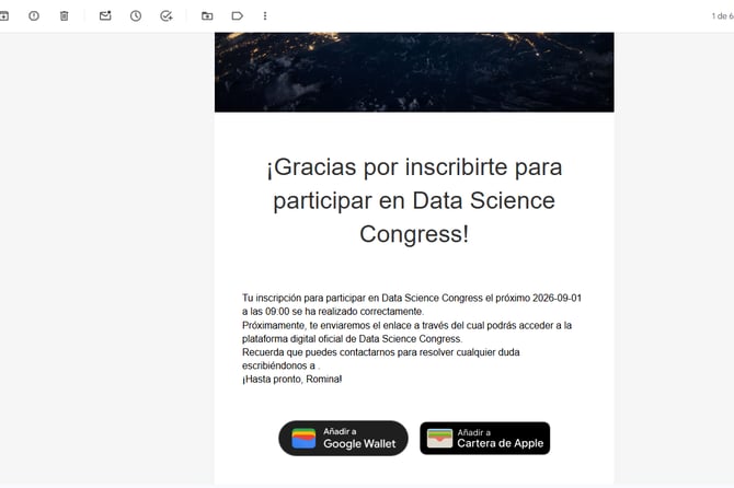 Es recomendable que este tipo de acreditación, a través de las Apps Wallet, sea complementaria a tener el QR en otro soporte (en la App del evento o el QR digital en el email), ya que no todo el mundo está familiarizado con ellas.