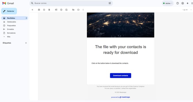 6. Llega un email al buzón desde donde el miembro del stand puede abrir el Excel con los leads.