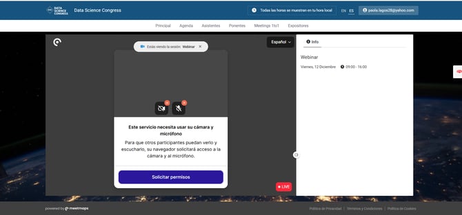 Cuando el panelista entra por primera vez a la sesión, la web pide los permisos para la cámara y micrófono.